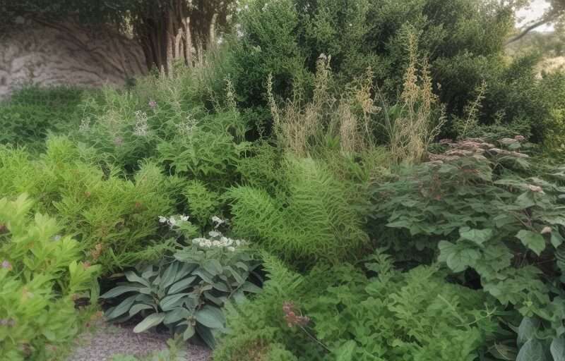 - Des espèces naturelles et des variétés cultivées associées à un sol humide créeront rapidement un “tapis forestier” coloré.