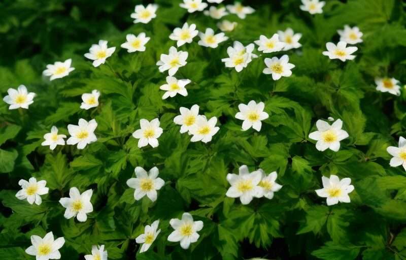 - Les fleurs printanières typiques telles que la jacinthe des bois ou Scillia non-scripta et l’anémone des bois ou Anemone nemorosa fleurissent avant que les arbres ne développent leurs feuilles.